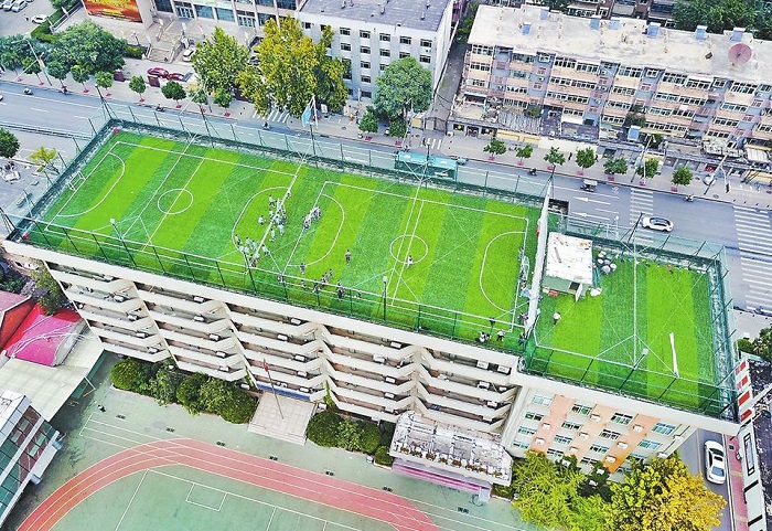 隨著公民運動健身理念的提升,公共體育設施使用壓力愈來愈大。人們的需求無法被滿足的同時,足球場地的鋪設伴隨著人造草坪的出現而大大簡化,人造草坪場地維護簡單,費用低廉。由此私營足球場地就如雨后春筍般應運而生,理所應當的占據在城市用地規劃中利用率不高的樓頂。