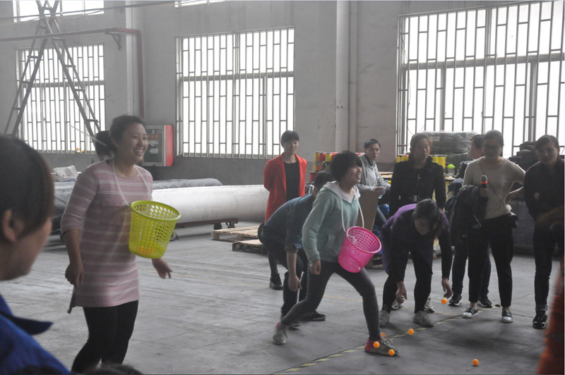 首先進行的是背靠背運氣球,在第一項背靠背運氣球項目中,馬成工廠陸鋒、閆平一馬當先,以9秒63的最快速度完成了比賽;跳繩毽子比賽則展示女同志的速度和靈巧,最后內貿部劉夢以52秒39的絕對優勢,獲得了該項目的第一名;背簍接乒乓球項目中,財務部余曉錦、張曉杰配合默契,以一分鐘接到14只乒乓球獲得該項目第一,無敵風火輪項目中,由馬成銷售劉俠、安美玲、華璐琳組成美女團隊,巾幗不讓須眉,以24秒91的微弱優勢領先,取得了第一名。