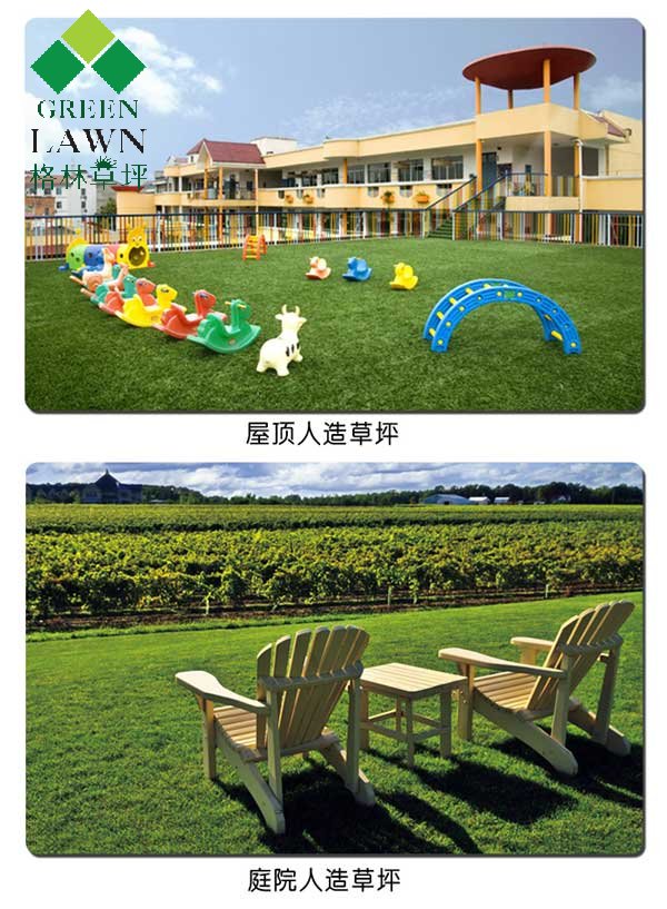 第六、平均使用壽命10年以上。歐洲二十年前鋪設的人造草坪尚在使用中。球場的各種劃線在生產時已用白色草苗一次成型。屬于環保產品,它不含任何有害物質,并且有吸噪音功能